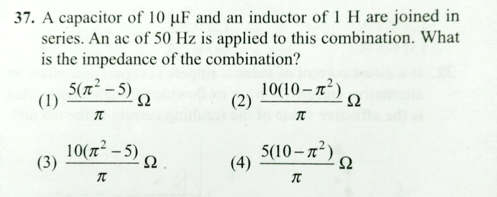 A capacitor of 10 muF and an inductor of 1 H are joined in series. An ac of 50 Hz is applied to this combination . what is the impedance of the combination ? A capacitor of 10 muF and an inductor of 1 H are joined in series. An ac of 50 Hz is applied to this combination . what is the impedance of the combination ? October 27, 2020 Category: Uncategorised (JEE Advanced Physics by BM Sharma + GMP Solutions) , Facebook Messenger WhatsApp Share this:TwitterFacebook Related