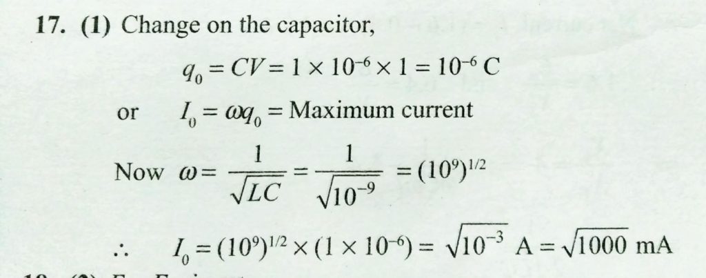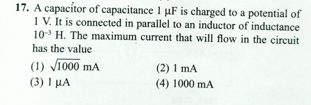 A capacitor of capacitance 1 μF is charged to a potential of 1 V, it is connected in parallel to an inductor of inductance 10^−3 H. The maximum current that will flow in the circuit has the value A capacitor of capacitance 1 μF is charged to a potential of 1 V it is connected in parallel to an inductor of inductance 10^−3 H. The maximum current that will flow in the circuit has the value October 27, 2020 Category: Uncategorised (JEE Advanced Physics by BM Sharma + GMP Solutions) , Facebook Messenger WhatsApp Share this:TwitterFacebook Related