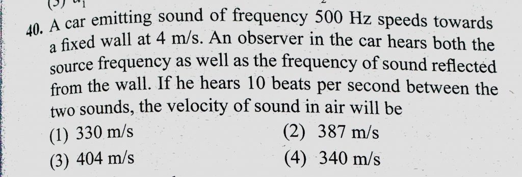 A car emitting sound of frequency 500 Hz speeds towards a fixed wall at 4 m/s. An observer in the car hears both the source frequency as well as the frequency of sound reflected A car emitting sound of frequency 500 Hz speeds towards a fixed wall at 4 m/s. An observer in the car hears both the source frequency as well as the frequency of sound reflected November 7, 2020 Category: Uncategorised (JEE Advanced Physics by BM Sharma + GMP Solutions) , Facebook Messenger WhatsApp Share this:TwitterFacebook Related