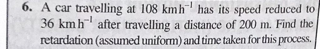 A car travelling at 108 km/h has its speed reduced to 36 km/h after travelling a distance of 200 m. Find the retardation (assumed uniform) and time taken for this process. A car travelling at 108 km/h has its speed reduced to 36 km/h after travelling a distance of 200 m. Find the retardation (assumed uniform) and time taken for this process. September 17, 2020 Category: Uncategorised (JEE Advanced Physics by BM Sharma + GMP Solutions) , Facebook Messenger WhatsApp Share this:TwitterFacebook Related