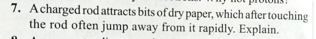 A charged rod attracts bits of dry paper, which after touching the rod often jump away from it rapidly . Explain . A charged rod attracts bits of dry paper which after touching the rod often jump away from it rapidly . Explain . October 28, 2020 Category: Uncategorised (JEE Advanced Physics by BM Sharma + GMP Solutions) , Facebook Messenger WhatsApp Share this:TwitterFacebook Related