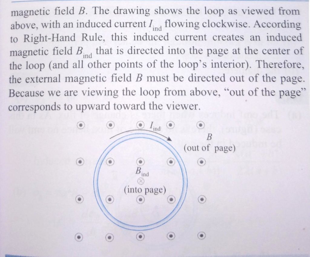 A circular loop of wire placed on flat horizontal plane. an external magnetic field is directed perpendicular to the plane of the loop. the magnitude of the applied magneytic field is increasing with time. because of this increasing magnetic field , an induced current is flowing clockwise in the loop , as viewed from above. what is the direction of the external magnetic field?