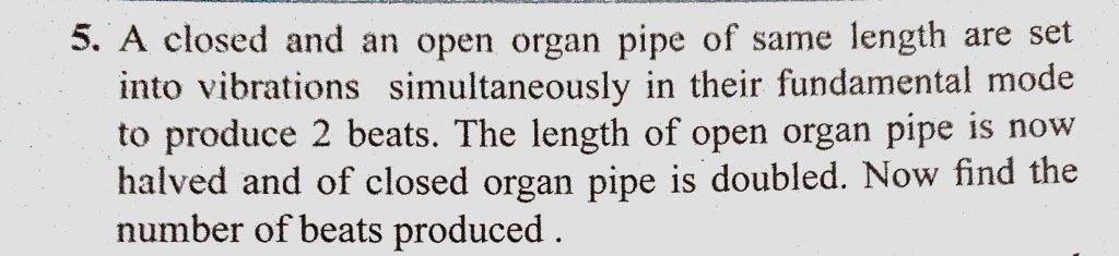 A closed and an open organ pipe of same length are set into vibrations simultaneously in their fundamental mode to produce 2 beats. The length of open organ pipe is now A closed and an open organ pipe of same length are set into vibrations simultaneously in their fundamental mode to produce 2 beats. The length of open organ pipe is now November 6, 2020 Category: Uncategorised (JEE Advanced Physics by BM Sharma + GMP Solutions) , Facebook Messenger WhatsApp Share this:TwitterFacebook Related