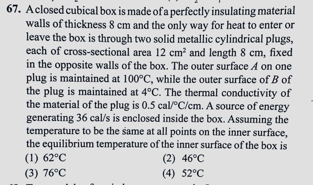 A closed cubical box is made of a perfectly insulating material walls of thickness 8 cm and the only way for heat to enter or leave the box is through two solid metallic cylinderical plugs, A closed cubical box is made of a perfectly insulating material walls of thickness 8 cm and the only way for heat to enter or leave the box is through two solid metallic cylinderical plugs October 25, 2020 Category: Uncategorised (JEE Advanced Physics by BM Sharma + GMP Solutions) , Facebook Messenger WhatsApp Share this:TwitterFacebook Related