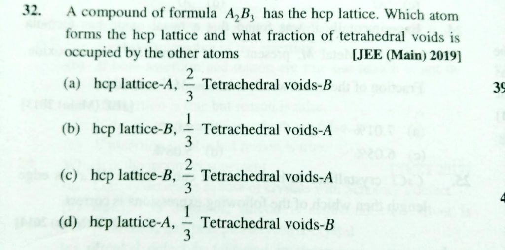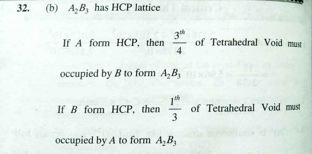 A compounde of formula A2B3 has the hcp lattice . which atom forms the hcp lattice and what fraction of tetrahedral voids is occupied by the other atoms A compounde of formula A2B3 has the hcp lattice . which atom forms the hcp lattice and what fraction of tetrahedral voids is occupied by the other atoms February 9, 2021 Category: Uncategorised (JEE Advanced Physics by BM Sharma + GMP Solutions) , Facebook Messenger WhatsApp Share this:TwitterFacebook Related
