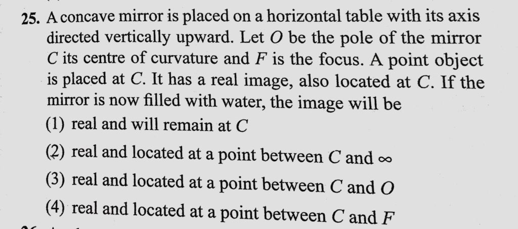 A concave mirror is placed on a horizontal table with its axis directed vertically upward. Let O be the pole of the mirror C its centre of curvature and F is the focus. A point object is placed at C. A concave mirror is placed on a horizontal table with its axis directed vertically upward. Let O be the pole of the mirror C its centre of curvature and F is the focus. A point object is placed at C. October 6, 2020 Category: Uncategorised (JEE Advanced Physics by BM Sharma + GMP Solutions) , Facebook Messenger WhatsApp Share this:TwitterFacebook Related