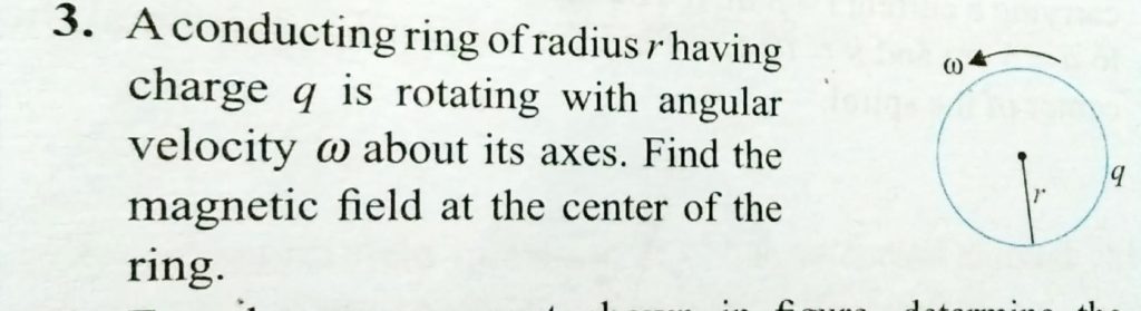 A conducting ring of radius r having charge q is rotating with angular velocity omega about its axes. Find the magnetic centre of the ring. A conducting ring of radius r having charge q is rotating with angular velocity omega about its axes. Find the magnetic centre of the ring. October 16, 2020 Category: Uncategorised (JEE Advanced Physics by BM Sharma + GMP Solutions) , Facebook Messenger WhatsApp Share this:TwitterFacebook Related