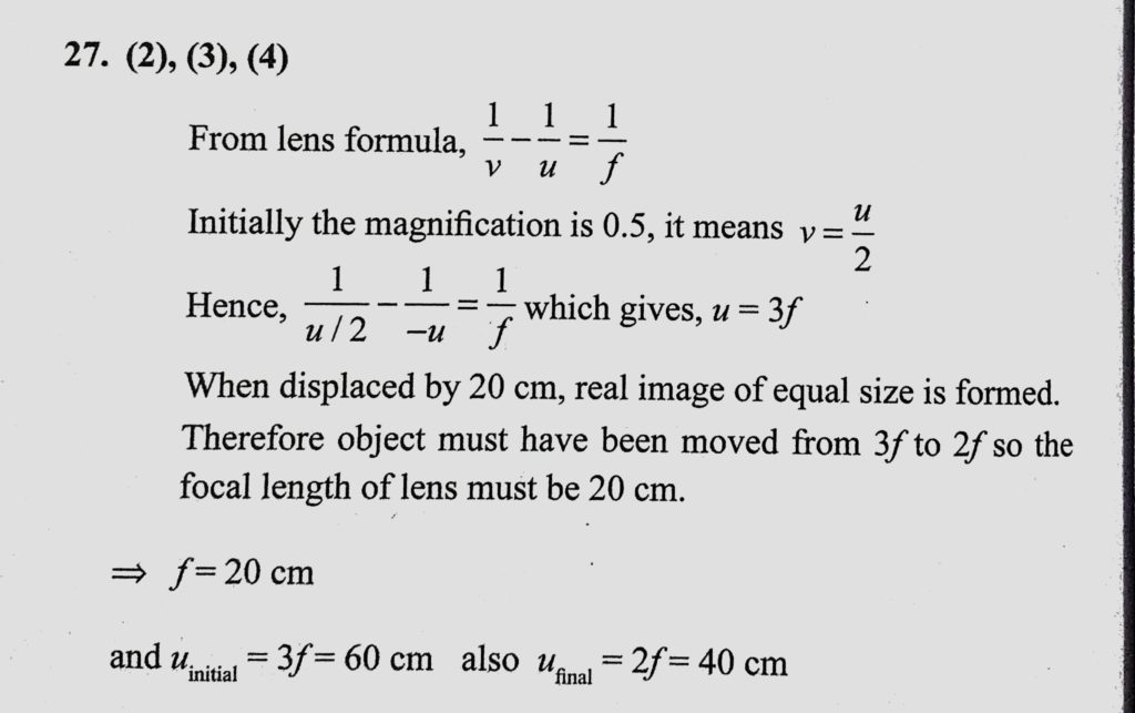 A convex lens forms a real image of an object with magnification 0.5. If the object is displaced by 20 cm along the principal axis, a real image equal to the size of the object is formed A convex lens forms a real image of an object with magnification 0.5. If the object is displaced by 20 cm along the principal axis a real image equal to the size of the object is formed October 9, 2020 Category: Uncategorised (JEE Advanced Physics by BM Sharma + GMP Solutions) , Facebook Messenger WhatsApp Share this:TwitterFacebook Related