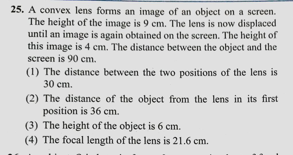 A convex lens forms an image of an object on a screen. The height of the image is 9 cm. The lens is now displaced until an image is again obtained on the screen. The height A convex lens forms an image of an object on a screen. The height of the image is 9 cm. The lens is now displaced until an image is again obtained on the screen. The height October 9, 2020 Category: Uncategorised (JEE Advanced Physics by BM Sharma + GMP Solutions) , Facebook Messenger WhatsApp Share this:TwitterFacebook Related
