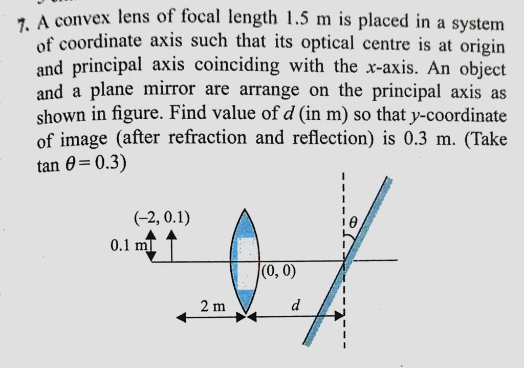 A convex lens of focal length 1.5 m is placed in a system of coordinate axis such that its optical centre is at origin and principal axis coinciding with the x axis. An object and A convex lens of focal length 1.5 m is placed in a system of coordinate axis such that its optical centre is at origin and principal axis coinciding with the x axis. An object and October 9, 2020 Category: Uncategorised (JEE Advanced Physics by BM Sharma + GMP Solutions) , Facebook Messenger WhatsApp Share this:TwitterFacebook Related