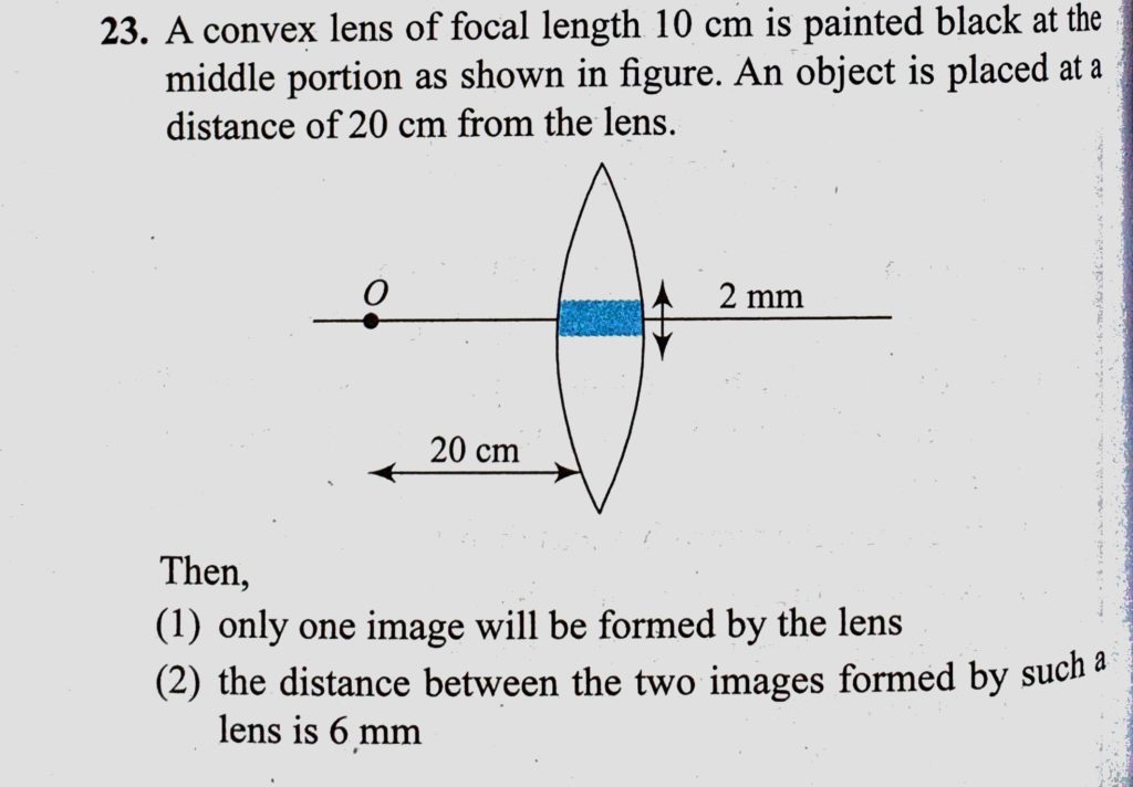 A convex lens of focal length 10 cm is painted black at the middle portion as shown in figure. An object is placed at a distance of 20 cm from the lens. A convex lens of focal length 10 cm is painted black at the middle portion as shown in figure. An object is placed at a distance of 20 cm from the lens. October 8, 2020 Category: Uncategorised (JEE Advanced Physics by BM Sharma + GMP Solutions) , Facebook Messenger WhatsApp Share this:TwitterFacebook Related