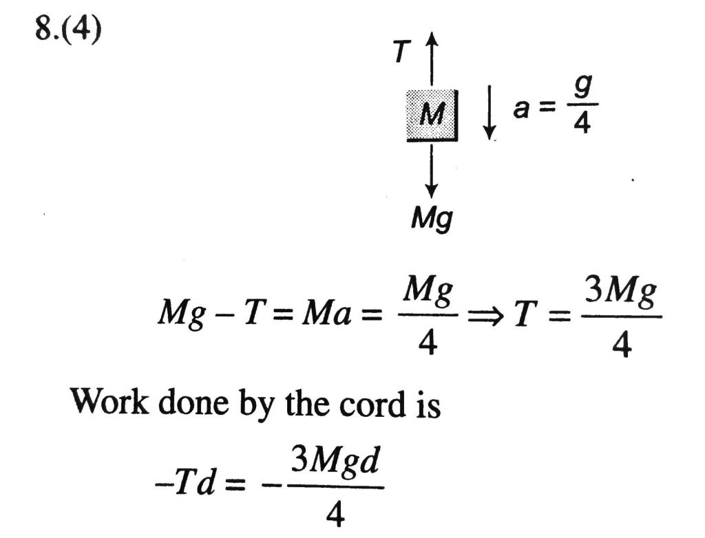 A cord is used to lower vertically a block of mass M, a distance d at a constant downward acceleration of g/4, then the work done by the cord on the block is. A cord is used to lower vertically a block of mass M a distance d at a constant downward acceleration of g/4 then the work done by the cord on the block is. December 6, 2020 Category: Uncategorised (JEE Advanced Physics by BM Sharma + GMP Solutions) , Facebook Messenger WhatsApp Share this:TwitterFacebook Related