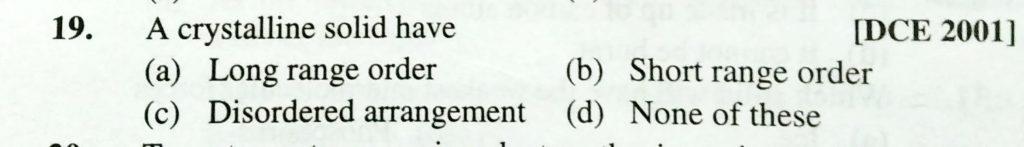 A crystalline solid have (a) Long range order (b) short range order (c) disordered arrangement (d) none of these A crystalline solid have (a) Long range order (b) short range order (c) disordered arrangement (d) none of these February 8, 2021 Category: Uncategorised (JEE Advanced Physics by BM Sharma + GMP Solutions) , Facebook Messenger WhatsApp Share this:TwitterFacebook Related