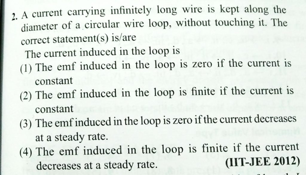 A current carrying infinitely long wire is kept along the diameter of a circular wire loop, without touching it. The correct statements is/are A current carrying infinitely long wire is kept along the diameter of a circular wire loop without touching it. The correct statements is/are October 21, 2020 Category: Uncategorised (JEE Advanced Physics by BM Sharma + GMP Solutions) , Facebook Messenger WhatsApp Share this:TwitterFacebook Related