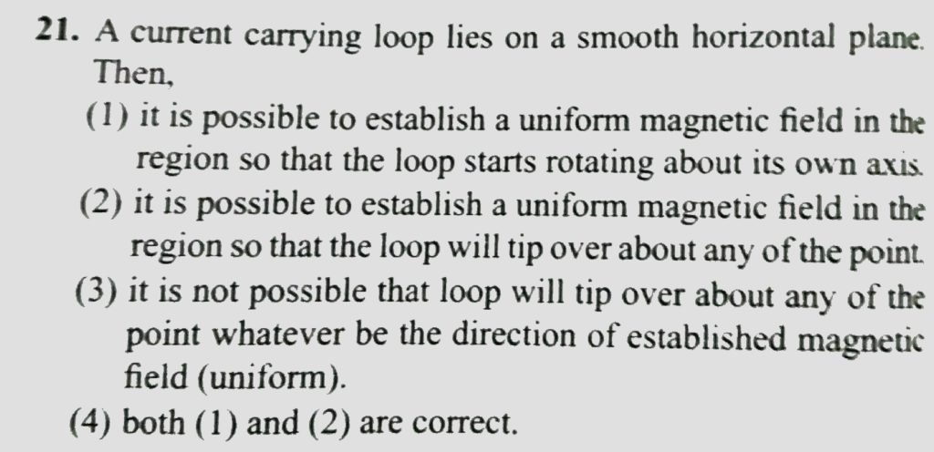 A current carrying loop lies on a smooth horizontal plane. Then, A current carrying loop lies on a smooth horizontal plane. Then October 13, 2020 Category: Uncategorised (JEE Advanced Physics by BM Sharma + GMP Solutions) , Facebook Messenger WhatsApp Share this:TwitterFacebook Related