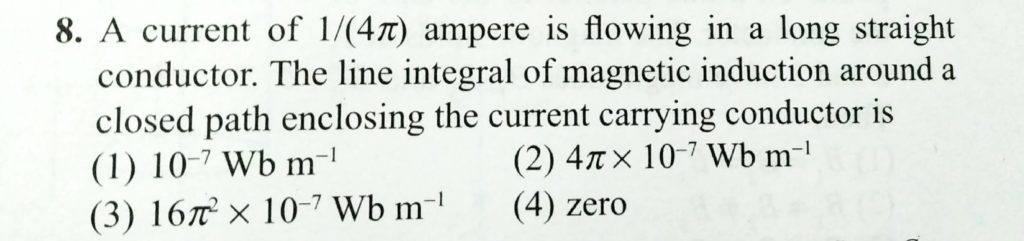 A current of 1/4 pie ampere is flowing in a long straight conductor. The line integral of magnetic induction around a closed path enclosing the current carrying conductor is A current of 1/4 pie ampere is flowing in a long straight conductor. The line integral of magnetic induction around a closed path enclosing the current carrying conductor is October 16, 2020 Category: Uncategorised (JEE Advanced Physics by BM Sharma + GMP Solutions) , Facebook Messenger WhatsApp Share this:TwitterFacebook Related