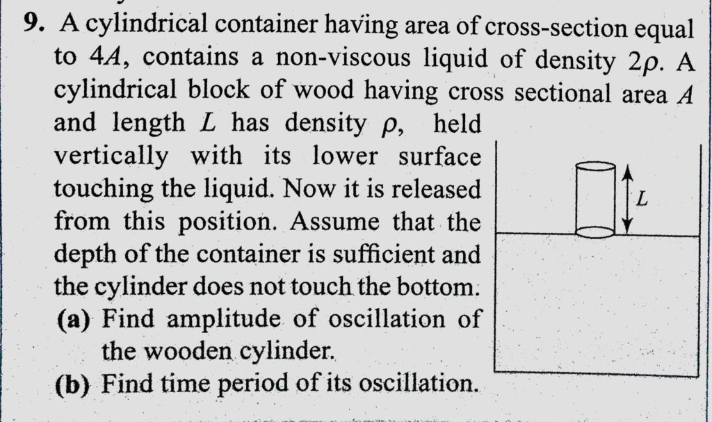 A cylindrical container having area of cross-section equal to 4A, contains a non-viscous liquid of density 2 rho. A cylindrical block of wood having cross sectional area A and length L A cylindrical container having area of cross-section equal to 4A contains a non-viscous liquid of density 2 rho. A cylindrical block of wood having cross sectional area A and length L October 30, 2020 Category: Uncategorised (JEE Advanced Physics by BM Sharma + GMP Solutions) , Facebook Messenger WhatsApp Share this:TwitterFacebook Related