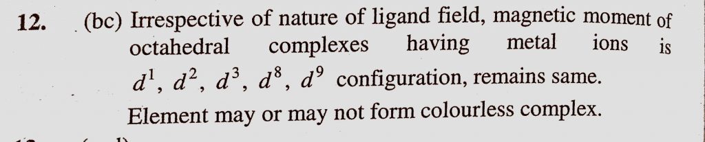 A d-block element forms octahedral complex but its magnetic moment remains same either in strong field or in weak field ligand. Which of the following is/are correct A d-block element forms octahedral complex but its magnetic moment remains same either in strong field or in weak field ligand. Which of the following is/are correct December 6, 2020 Category: Uncategorised (JEE Advanced Physics by BM Sharma + GMP Solutions) , Facebook Messenger WhatsApp Share this:TwitterFacebook Related