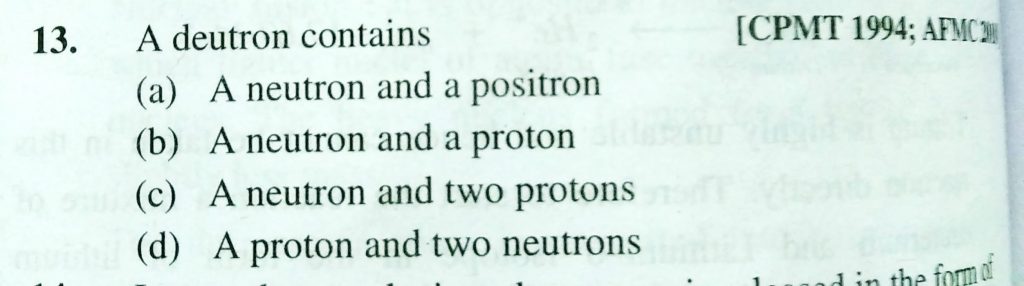 A deutron contains (a) A neutron and a poistron (b) A neuton and a proton (c) A neutron and two protons (d) A proton and two neutrons A deutron contains (a) A neutron and a poistron (b) A neuton and a proton (c) A neutron and two protons (d) A proton and two neutrons February 13, 2021 Category: Uncategorised (JEE Advanced Physics by BM Sharma + GMP Solutions) , Facebook Messenger WhatsApp Share this:TwitterFacebook Related