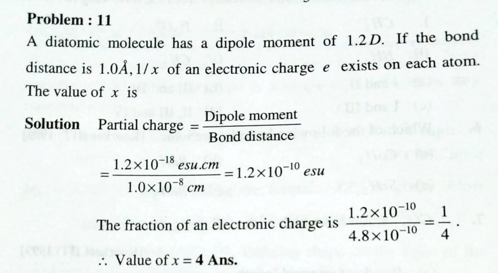 A diatomic has a dipole moment of 1.2 D . If the bond distance is 1.0 A , 1/x of an electronic charge e exists on each atom. The value of x is 1/x of an electronic charge e exists on each atom. The value of x is A diatomic has a dipole moment of 1.2 D . If the bond distance is 1.0 A December 15, 2020 Category: Uncategorised (JEE Advanced Physics by BM Sharma + GMP Solutions) , Facebook Messenger WhatsApp Share this:TwitterFacebook Related