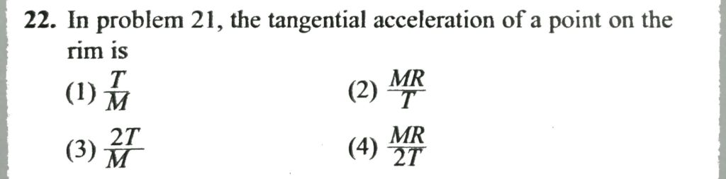 In problem 21, the tangential acceleration of a point on the rim is In problem 21 the tangential acceleration of a point on the rim is September 25, 2020 Category: Uncategorised (JEE Advanced Physics by BM Sharma + GMP Solutions) , Facebook Messenger WhatsApp Share this:TwitterFacebook Related