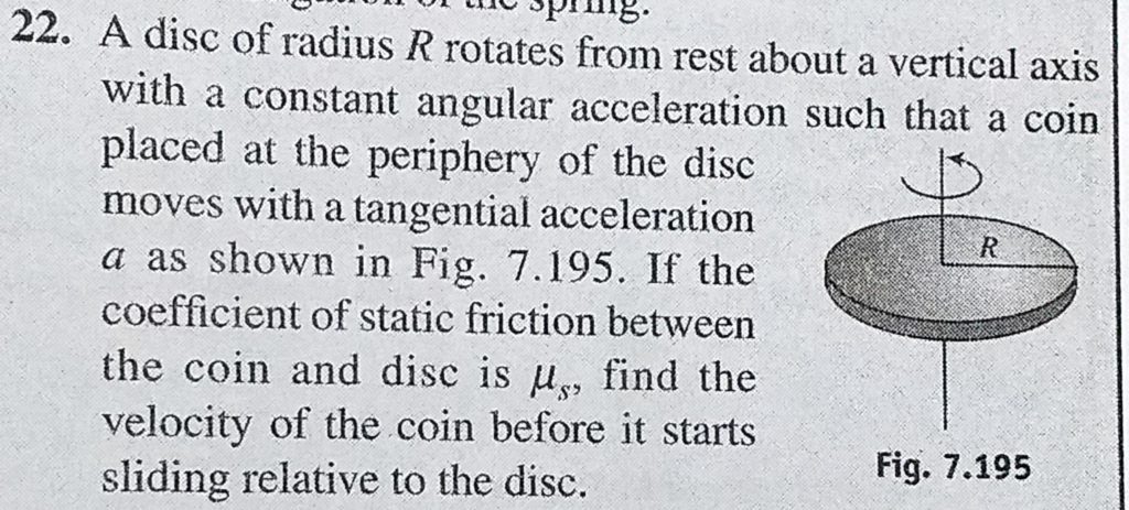 A disc of radius R rotates from rest about a vertical axis with a constant angular acceleration such that a coin placed at the periphery of the disc moves with a tangential acceleration a A disc of radius R rotates from rest about a vertical axis with a constant angular acceleration such that a coin placed at the periphery of the disc moves with a tangential acceleration a September 30, 2020 Category: Uncategorised (JEE Advanced Physics by BM Sharma + GMP Solutions) , Facebook Messenger WhatsApp Share this:TwitterFacebook Related