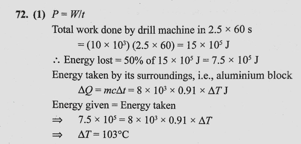 A drilling machine of 10 kW power is used to drill a bore in a small aluminium block of mass 8 kg. If 50% of power is used up in heating the machine itself or lost to the surroundings then A drilling machine of 10 kW power is used to drill a bore in a small aluminium block of mass 8 kg. If 50% of power is used up in heating the machine itself or lost to the surroundings then October 24, 2020 Category: Uncategorised (JEE Advanced Physics by BM Sharma + GMP Solutions) , Facebook Messenger WhatsApp Share this:TwitterFacebook Related