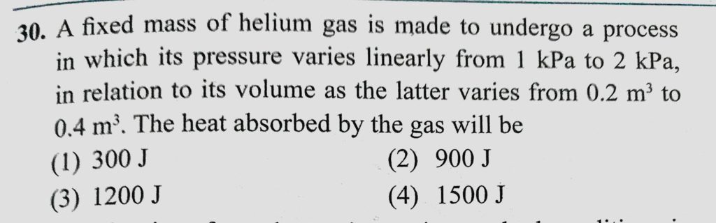 A fixed mass of helium gas is made to undergo a process in which its pressure varies linearly from 1 kPa to 2 kPa, in relation to its volume as the latter varies from 0.2 m^3 to 0.4 A fixed mass of helium gas is made to undergo a process in which its pressure varies linearly from 1 kPa to 2 kPa in relation to its volume as the latter varies from 0.2 m^3 to 0.4 October 29, 2020 Category: Uncategorised (JEE Advanced Physics by BM Sharma + GMP Solutions) , Facebook Messenger WhatsApp Share this:TwitterFacebook Related