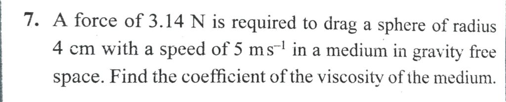 A force of 3.14 N is required to drag a sphere of radius 4 cm with a speed of 5 m/s in a medium in gravity free space. Find the coefficient of the viscosity of the medium. A force of 3.14 N is required to drag a sphere of radius 4 cm with a speed of 5 m/s in a medium in gravity free space. Find the coefficient of the viscosity of the medium. October 11, 2020 Category: Uncategorised (JEE Advanced Physics by BM Sharma + GMP Solutions) , Facebook Messenger WhatsApp Share this:TwitterFacebook Related