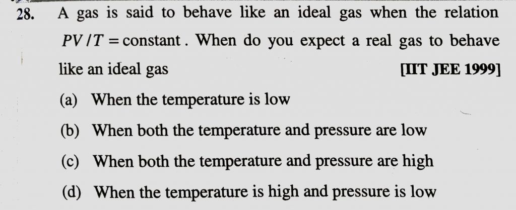 A gas is said to behave like an ideal gas when the relation PV/T = constant . when do you expect a real gas to behave like an ideal gas A gas is said to behave like an ideal gas when the relation PV/T = constant . when do you expect a real gas to behave like an ideal gas February 12, 2021 Category: Uncategorised (JEE Advanced Physics by BM Sharma + GMP Solutions) , Facebook Messenger WhatsApp Share this:TwitterFacebook Related