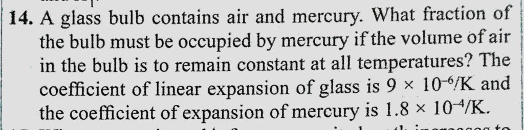 A glass bulb contains air and mercury. What fraction of the bulb must be occupied by mercury if the volume of air in the bulb is to remain constant at all temperatures ? The coefficient A glass bulb contains air and mercury. What fraction of the bulb must be occupied by mercury if the volume of air in the bulb is to remain constant at all temperatures ? The coefficient October 23, 2020 Category: Uncategorised (JEE Advanced Physics by BM Sharma + GMP Solutions) , Facebook Messenger WhatsApp Share this:TwitterFacebook Related