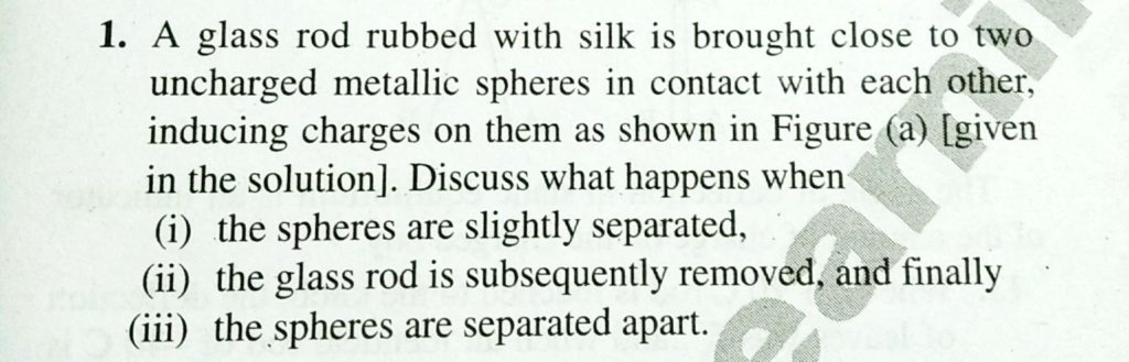 A glass rod rubbed with slik is brought close to two uncharged metallic spheres in contact with each other, inducing charges on them as shown in Fig. Describe what happens when A glass rod rubbed with slik is brought close to two uncharged metallic spheres in contact with each other inducing charges on them as shown in Fig. Describe what happens when September 15, 2020 Category: Uncategorised (JEE Advanced Physics by BM Sharma + GMP Solutions) , Facebook Messenger WhatsApp Share this:TwitterFacebook Related