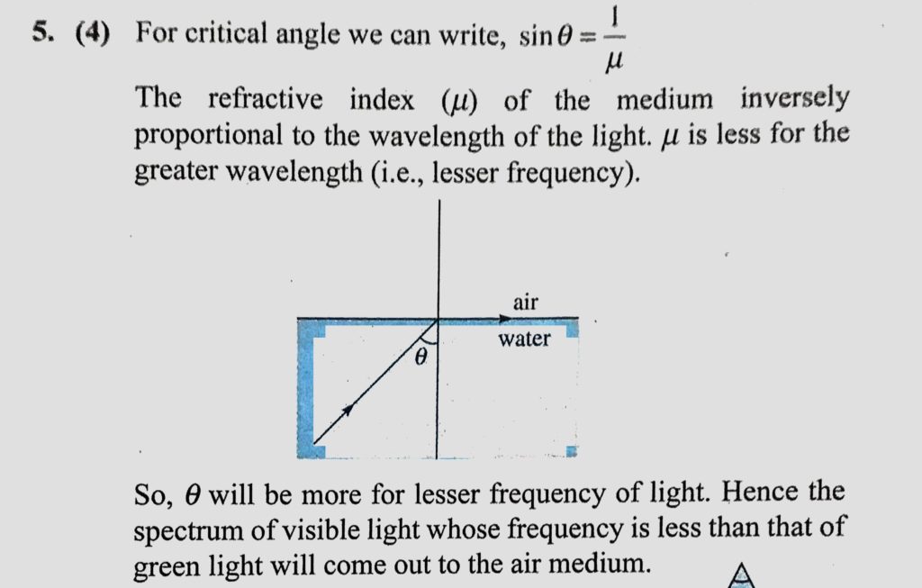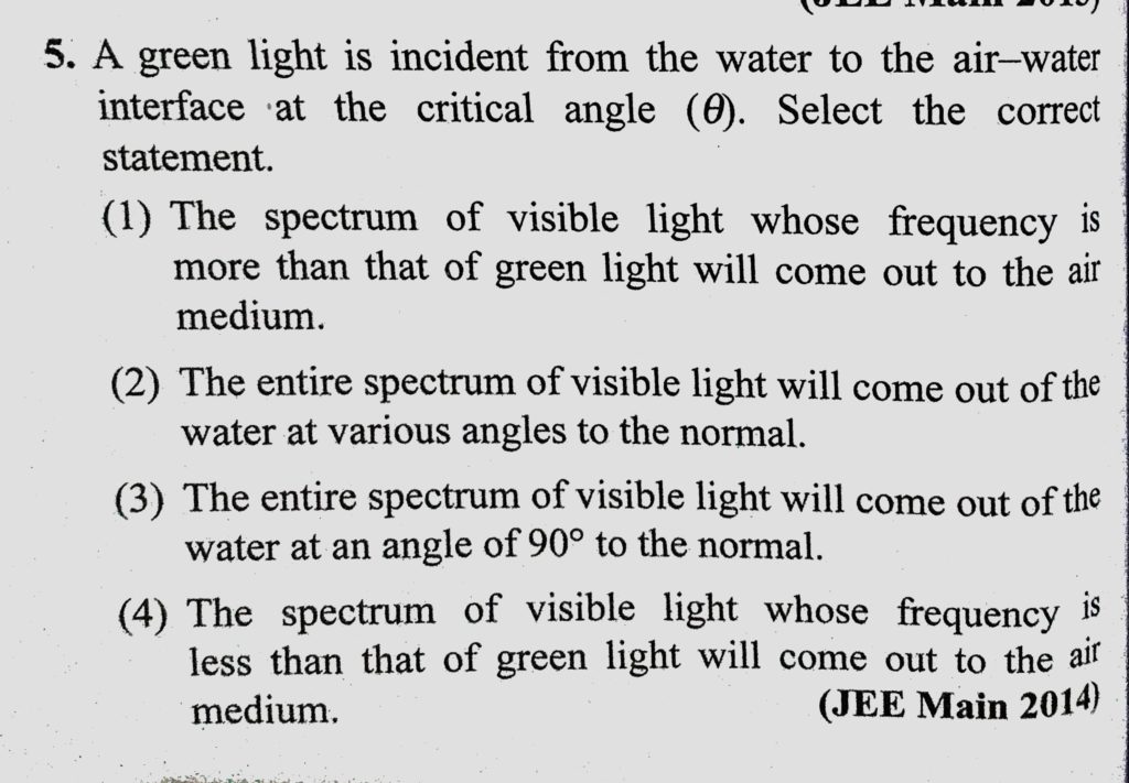 A green light is incident from the water to the air-water interface at the critical angle (theta). Select the correct statement. A green light is incident from the water to the air-water interface at the critical angle (theta). Select the correct statement. October 7, 2020 Category: Uncategorised (JEE Advanced Physics by BM Sharma + GMP Solutions) , Facebook Messenger WhatsApp Share this:TwitterFacebook Related