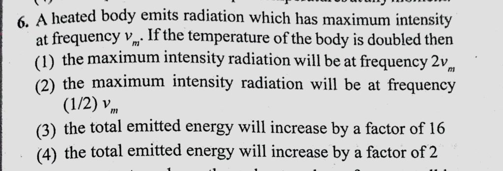 A heated body emits radiation which has maximum intensity at frequency vm. If the temperature of the body is doubled then (1) the maximum intensity radiation will be at frequency A heated body emits radiation which has maximum intensity at frequency vm. If the temperature of the body is doubled then (1) the maximum intensity radiation will be at frequency October 25, 2020 Category: Uncategorised (JEE Advanced Physics by BM Sharma + GMP Solutions) , Facebook Messenger WhatsApp Share this:TwitterFacebook Related