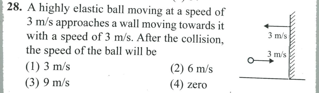 A highly elastic ball moving at a speed of 3 m/s approaches a wall moving towards it with a speed of 3 m/s. After the collision. the speed of the ball will be A highly elastic ball moving at a speed of 3 m/s approaches a wall moving towards it with a speed of 3 m/s. After the collision. the speed of the ball will be September 24, 2020 Category: Uncategorised (JEE Advanced Physics by BM Sharma + GMP Solutions) , Facebook Messenger WhatsApp Share this:TwitterFacebook Related