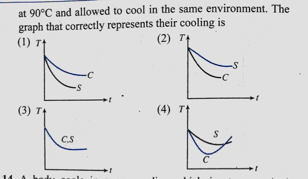 A hollow copper sphere S and a hollow copper cube C, both of negligibly thick walls of same area, are filled with water at 90 C and allowed to cool in the same environment. A hollow copper sphere S and a hollow copper cube C are filled with water at 90 C and allowed to cool in the same environment. both of negligibly thick walls of same area October 25, 2020 Category: Uncategorised (JEE Advanced Physics by BM Sharma + GMP Solutions) , Facebook Messenger WhatsApp Share this:TwitterFacebook Related