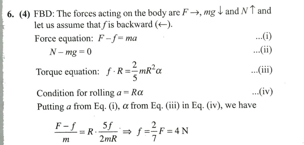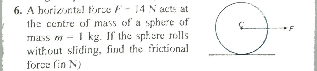 A horizontal force F = 14 N acts at the centre of mass of a sphere of mass m = 1 kg. If the sphere rolls without sliding, find the frictional force (in N) A horizontal force F = 14 N acts at the centre of mass of a sphere of mass m = 1 kg. If the sphere rolls without sliding find the frictional force (in N) October 1, 2020 Category: Uncategorised (JEE Advanced Physics by BM Sharma + GMP Solutions) , Facebook Messenger WhatsApp Share this:TwitterFacebook Related