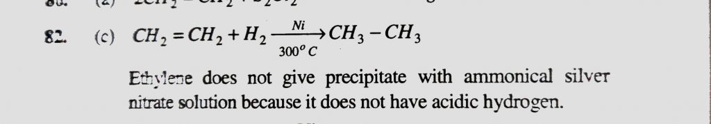 A hydrocarbon containing 2 carbon atoms gives Sabatier and Senderen’s reaction but does not give precipitate with ammonical silver nitrate solution. The hydrocarbon in the question is A hydrocarbon containing 2 carbon atoms gives Sabatier and Senderen's reaction but does not give precipitate with ammonical silver nitrate solution. The hydrocarbon in the question is December 13, 2020 Category: Uncategorised (JEE Advanced Physics by BM Sharma + GMP Solutions) , Facebook Messenger WhatsApp Share this:TwitterFacebook Related