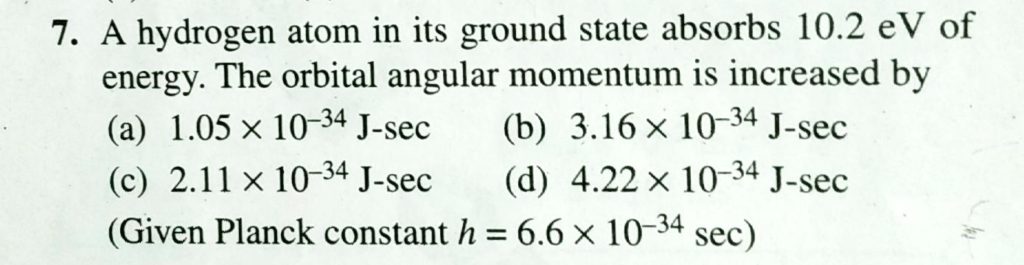 A hydrogen atom in its ground state absorbs 10.2 eV of energy. The oribital angular momentum is increased by hydrogen atom in its ground state absorbs 10.2 eV of energy. The oribital angular momentum is increased by September 13, 2020 Category: Uncategorised (JEE Advanced Physics by BM Sharma + GMP Solutions) , Facebook Messenger WhatsApp Share this:TwitterFacebook Related