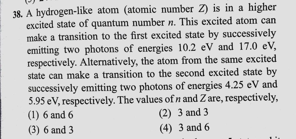A hydrogen-like atom (atomic number Z) is in a higher excited state of quantum number n. This excited atom can make a transition to the first excited state by successively emitting A hydrogen-like atom (atomic number Z) is in a higher excited state of quantum number n. This excited atom can make a transition to the first excited state by successively emitting October 15, 2020 Category: Uncategorised (JEE Advanced Physics by BM Sharma + GMP Solutions) , Facebook Messenger WhatsApp Share this:TwitterFacebook Related