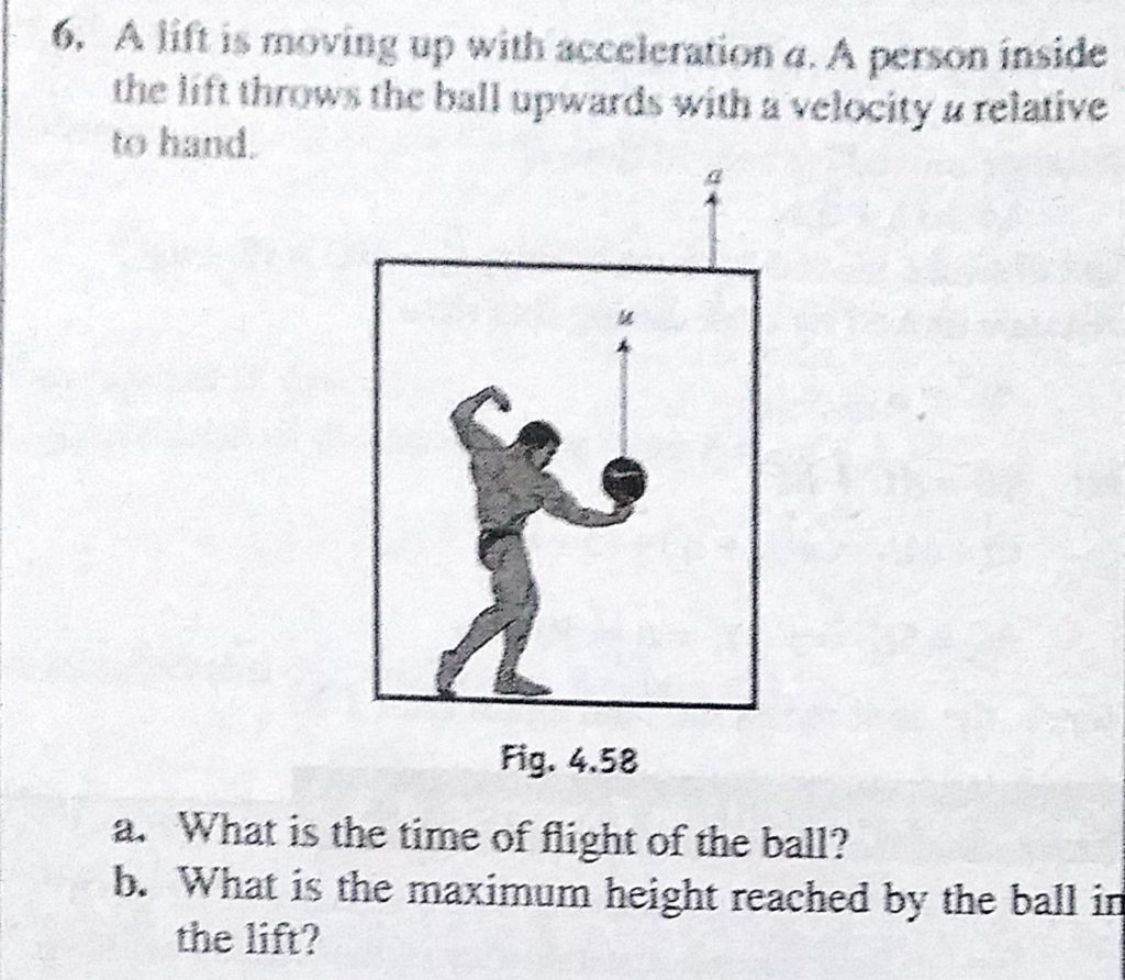 A lift is moving up with acceleration a. A person inside the lift throws the ball upwards with a velocity u relative to hand. a. What is the time of flight of the ball? b. What is the maximum height A lift is moving up with acceleration a. A person inside the lift throws the ball upwards with a velocity u relative to hand. a. What is the time of flight of the ball? b. What is the maximum height September 18, 2020 Category: Uncategorised (JEE Advanced Physics by BM Sharma + GMP Solutions) , Facebook Messenger WhatsApp Share this:TwitterFacebook Related