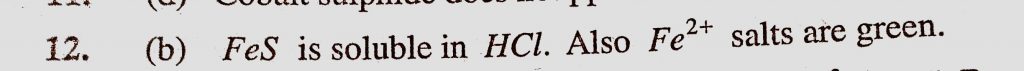 A light greenish coloured salt was soluble in water. On passing H2S into the solution a black precipitate was obtained which dissolve readily in HCl. The metal ion present is (a) Co +2 A light greenish coloured salt was soluble in water. On passing H2S into the solution a black precipitate was obtained which dissolve readily in HCl. The metal ion present is (a) Co +2 December 6, 2020 Category: Uncategorised (JEE Advanced Physics by BM Sharma + GMP Solutions) , Facebook Messenger WhatsApp Share this:TwitterFacebook Related