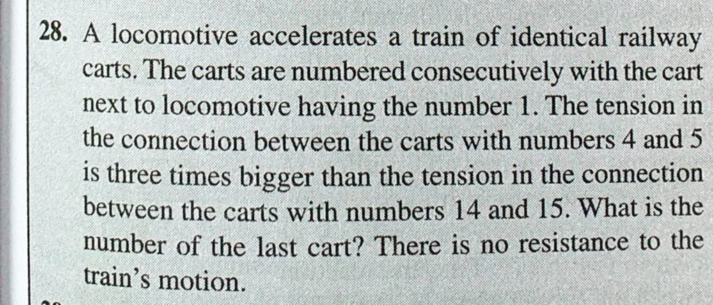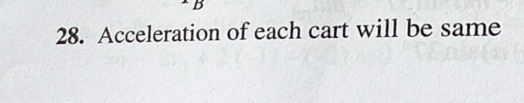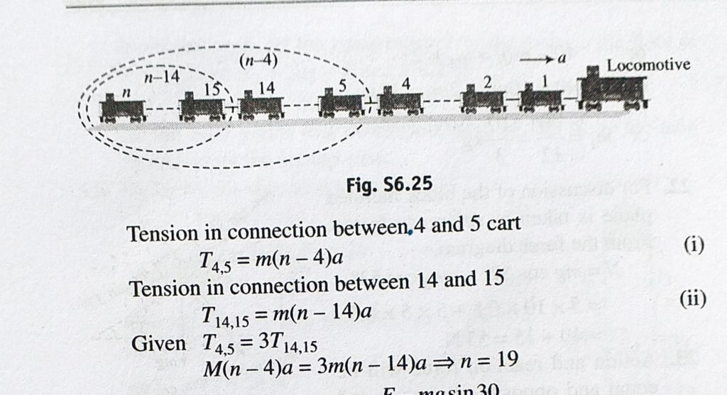 A locomotive accelerates a train of identical railway carts. The carts are numbered consecutively with the cart next to locomotive having the number 1. The tension in the connection between the carts with numbers 4 and 5 In Fig. 6.107 the man and the platform together weigh 950 N. The pulley can be treated as frictionless. Determine how hard the man to pull on the rope to lift himself upward above the ground September 25, 2020 Category: Uncategorised (JEE Advanced Physics by BM Sharma + GMP Solutions) , Facebook Messenger WhatsApp Share this:TwitterFacebook Related