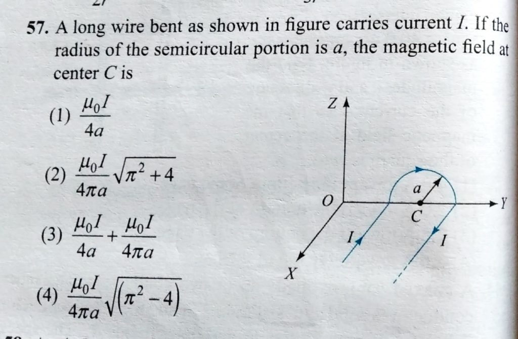 A long wire bent as shown in figure carries current I. If the radius of the semicircular portion is a, the magnetic field at center C is A long wire bent as shown in figure carries current I. If the radius of the semicircular portion is a the magnetic field at center C is October 17, 2020 Category: Uncategorised (JEE Advanced Physics by BM Sharma + GMP Solutions) , Facebook Messenger WhatsApp Share this:TwitterFacebook Related