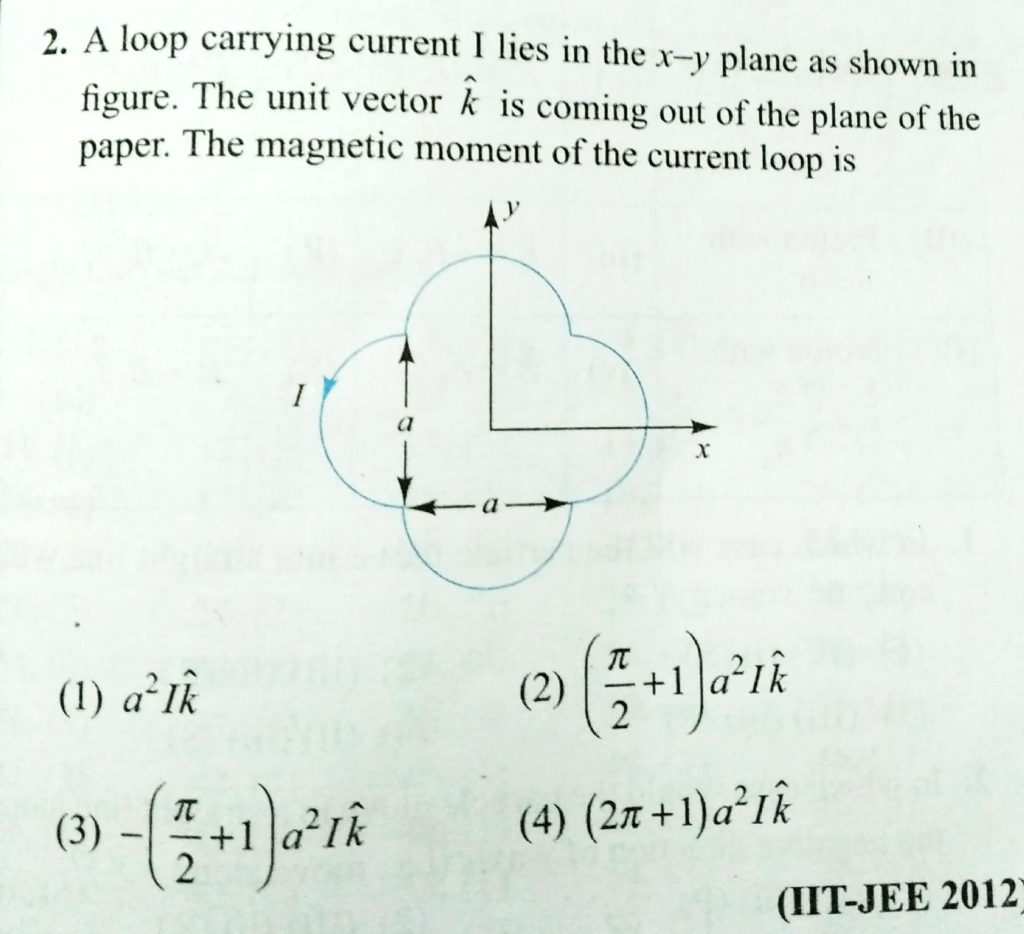 A loop carrying current I lies in the x – y plane as shown in figure. The unit vector K is comming out of the plane of the paper. The magnetic moment of the current loop is A loop carrying current I lies in the x - y plane as shown in figure. The unit vector K is comming out of the plane of the paper. The magnetic moment of the current loop is October 16, 2020 Category: Uncategorised (JEE Advanced Physics by BM Sharma + GMP Solutions) , Facebook Messenger WhatsApp Share this:TwitterFacebook Related