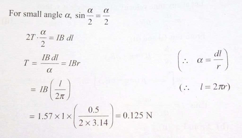 A loop of flexible conducting wire of length 0.5 m lies in a magnetic field of 1.0 T perpendicular to the plane of the loop. Show that when a current as shown in Fig. 1.112 is passed through the loop, it opens into a circle. Also calculate the tension developed in the wire if the current is 1.57 A.