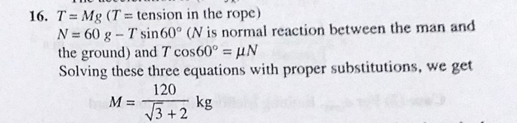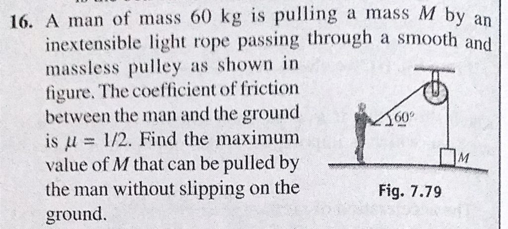 A man of mass 60 kg is pulling a mass M by an inextensible light rope passing through a smooth and massless pulley as shown in figure. The coefficient of friction between the man and the ground A man of mass 60 kg is pulling a mass M by an inextensible light rope passing through a smooth and massless pulley as shown in figure. The coefficient of friction between the man and the ground September 30, 2020 Category: Uncategorised (JEE Advanced Physics by BM Sharma + GMP Solutions) , Facebook Messenger WhatsApp Share this:TwitterFacebook Related