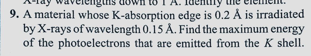 A material whose K-absorption edge is 0.2 A is irradiated by X-rays of wavelength 0.15 A. Find the maximum energy of the photoelectrons that are emitted from the K shell. A material whose K-absorption edge is 0.2 A is irradiated by X-rays of wavelength 0.15 A. Find the maximum energy of the photoelectrons that are emitted from the K shell. October 15, 2020 Category: Uncategorised (JEE Advanced Physics by BM Sharma + GMP Solutions) , Facebook Messenger WhatsApp Share this:TwitterFacebook Related