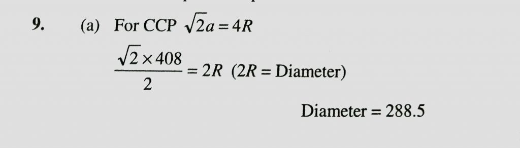 A metal crystallizes with a face – centred cubic lattice . THe edge of the unit cell is 408 pm. The diameter of the metal atom is (a) 288 pm (b) 408 pm (c) 144 pm (d) 204 pm A metal crystallizes with a face - centred cubic lattice . THe edge of the unit cell is 408 pm. The diameter of the metal atom is (a) 288 pm (b) 408 pm (c) 144 pm (d) 204 pm February 8, 2021 Category: Uncategorised (JEE Advanced Physics by BM Sharma + GMP Solutions) , Facebook Messenger WhatsApp Share this:TwitterFacebook Related