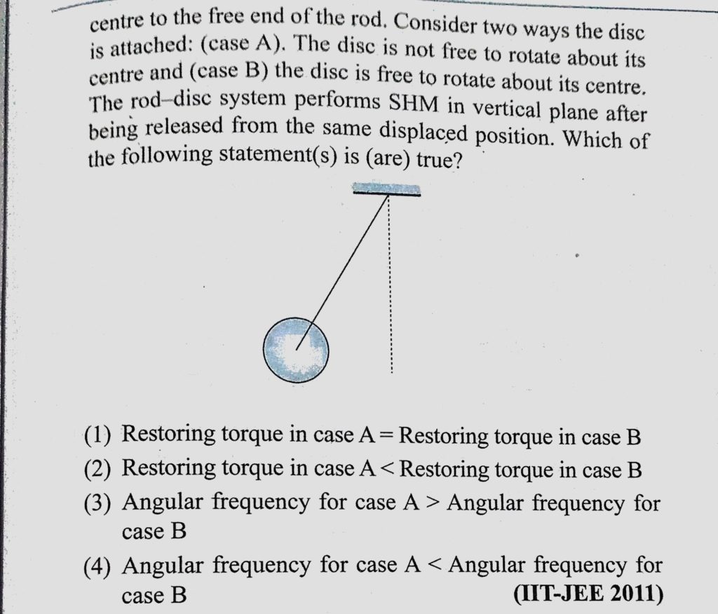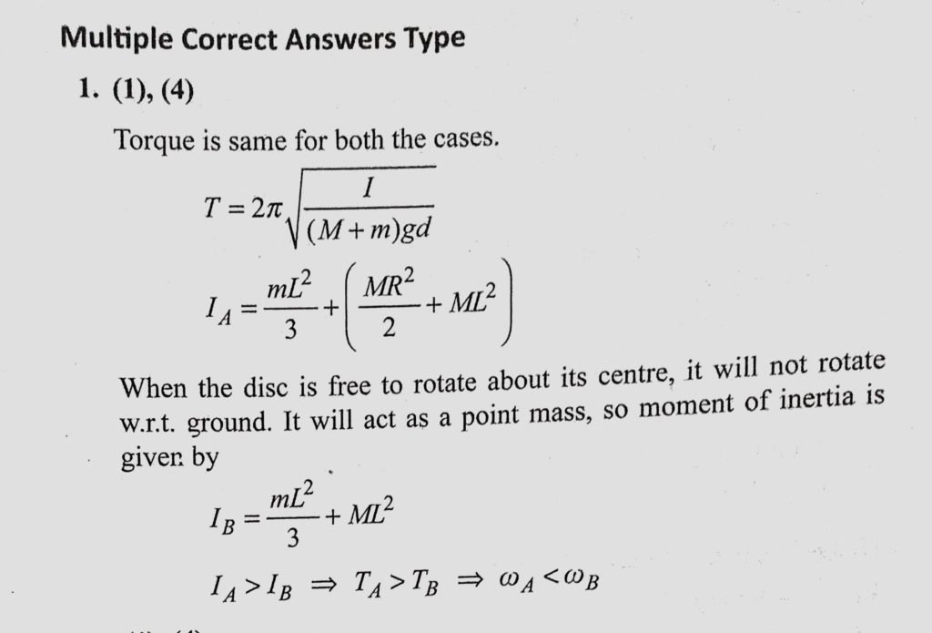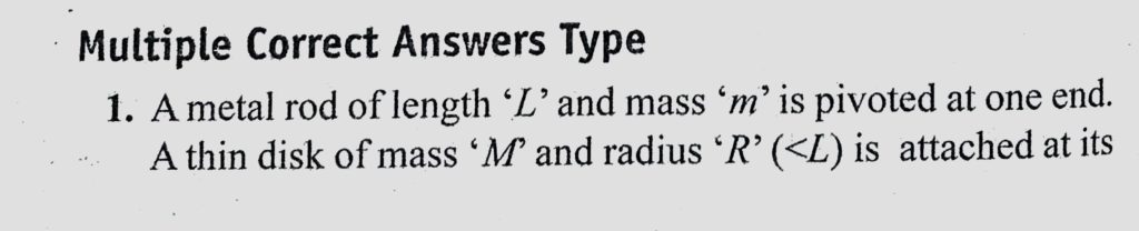 A metal rod of length ‘L’ and mass ‘m’ is pivoted at one end. A thin disk of mass ‘M’ and radius ‘R’ (<L) is attached at its centre to the free end of the rod. Consider two ways the disc A metal rod of length 'L' and mass 'm' is pivoted at one end. A thin disk of mass 'M' and radius 'R' (<L) is attached at its centre to the free end of the rod. Consider two ways the disc November 1, 2020 Category: Uncategorised (JEE Advanced Physics by BM Sharma + GMP Solutions) , Facebook Messenger WhatsApp Share this:TwitterFacebook Related
